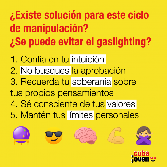 Sin los rastros visibles de un moretón o la furia ciega y desmedida de una confrontación verbal, van socavando poco a poco la certeza y seguridad en sí mismo y sus acciones del que es víctima de este comportamiento ajeno. Hoy en Cuba Joven nos gustaría conversar sobre una de sus expresiones, el gaslighting (luz de gas, por su traducción al español) y cómo hacerle frente.