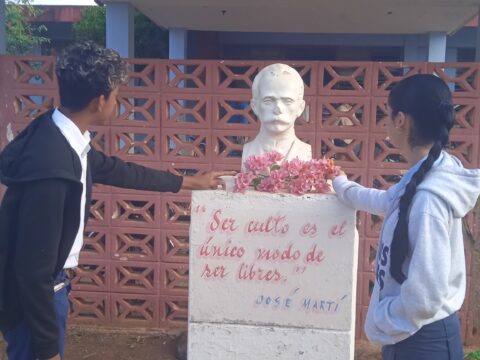 Jóvenes estudiantes en el consejo popular Máximo Gómez rinden honor al Maestro